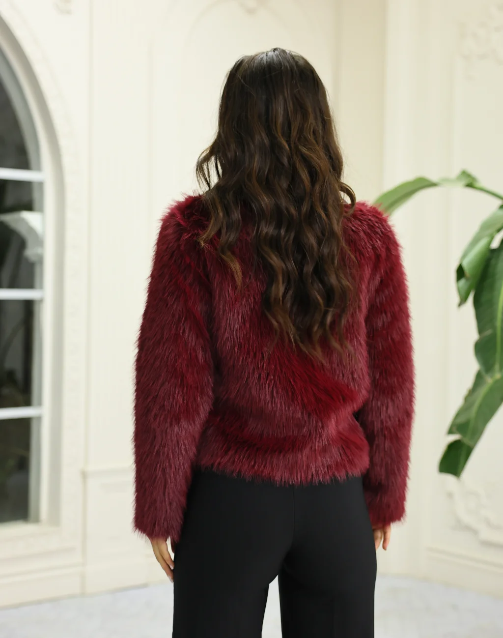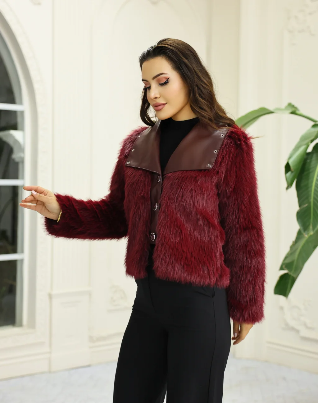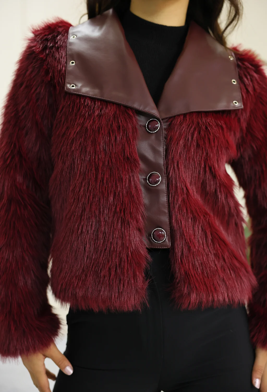 Kuşgözü Detaylı Geniş Yaka Deri&Kürk Bordo
