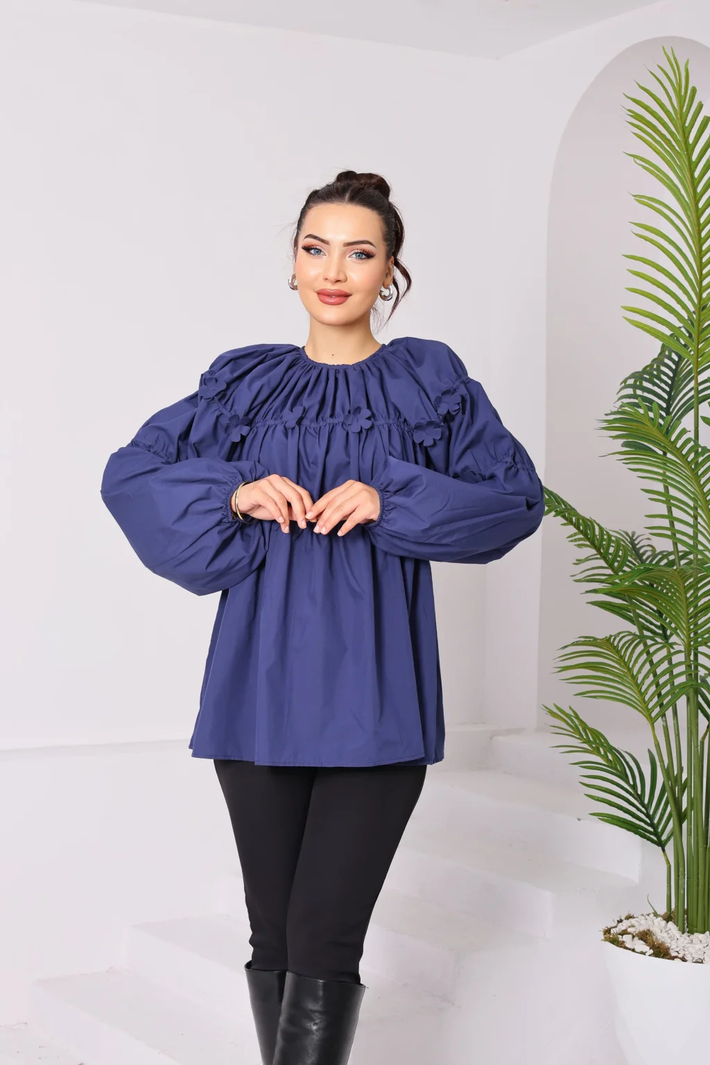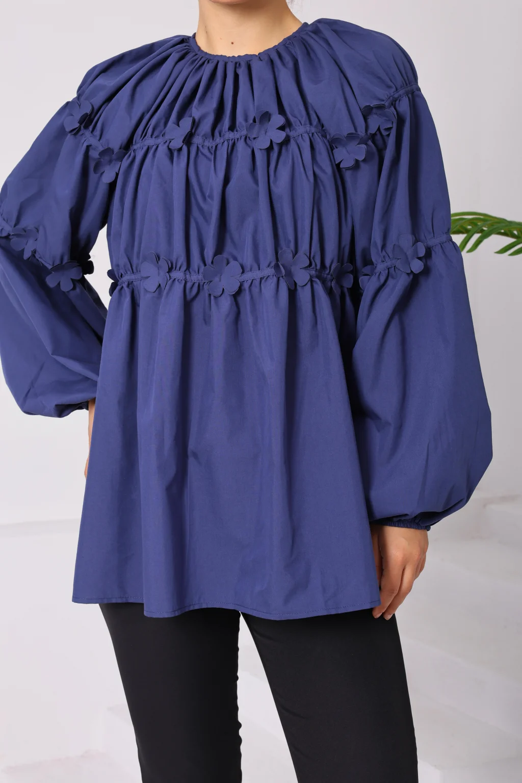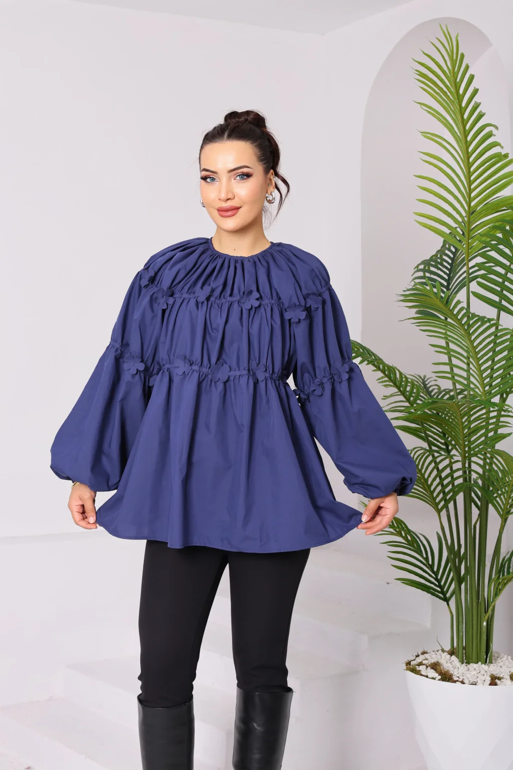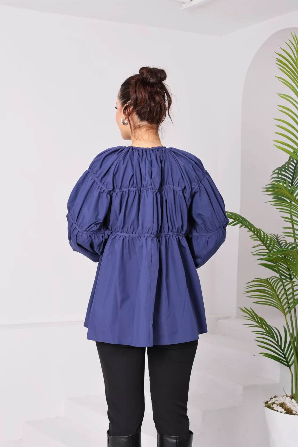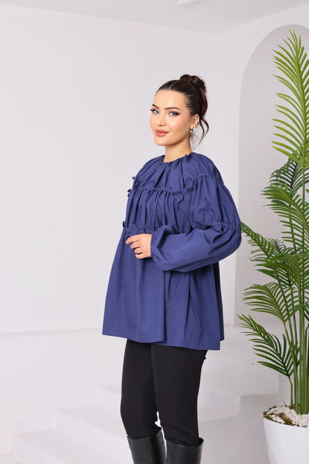 Ön Büzgülü Uzun Tunik Yağ Yeşili