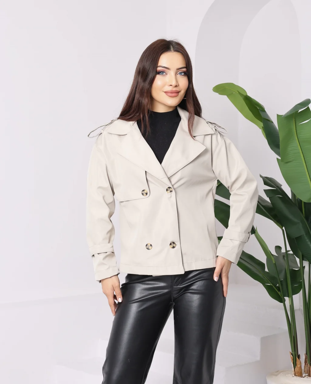 Roba Detaylı Kısa Trençkot Taş