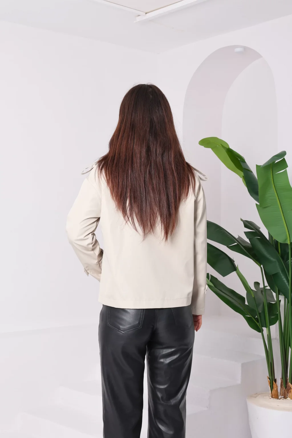 Kolu Cep Detaylı Deri&Kürk Ceket Krem
