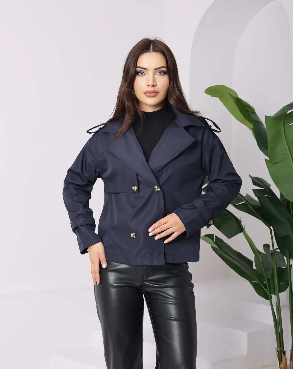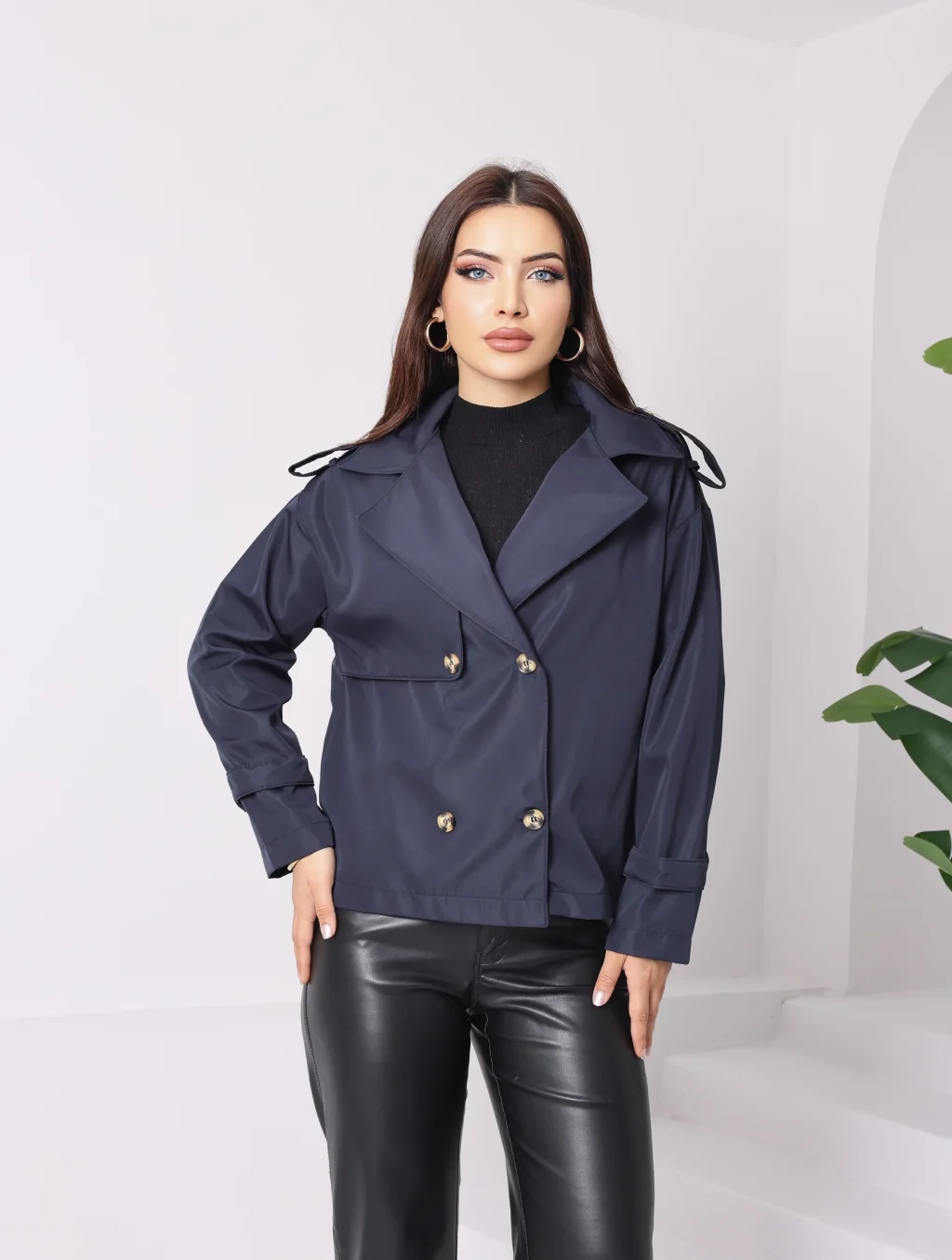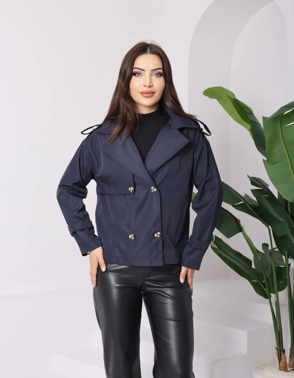 Roba Detaylı Kısa Trençkot Lacivert