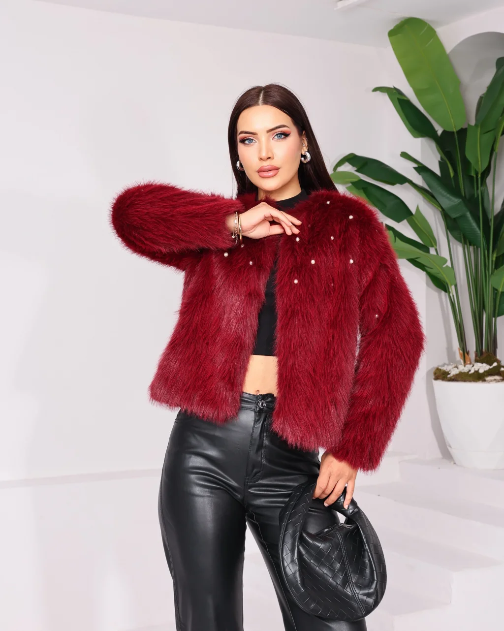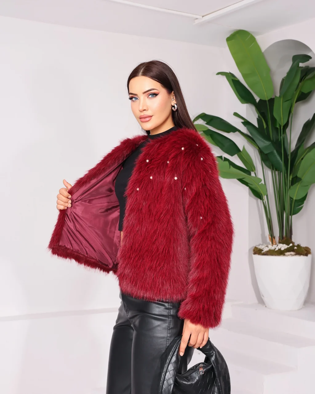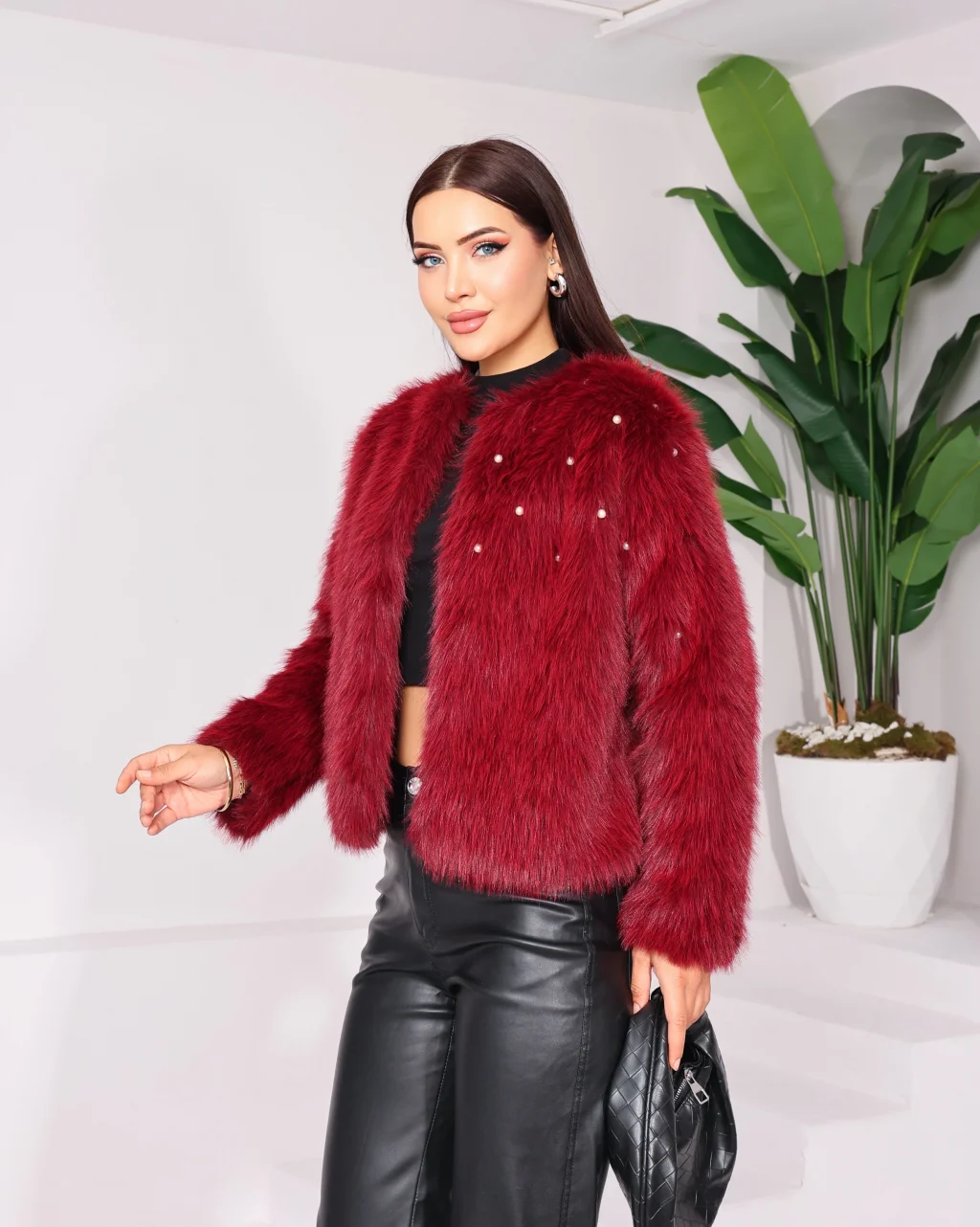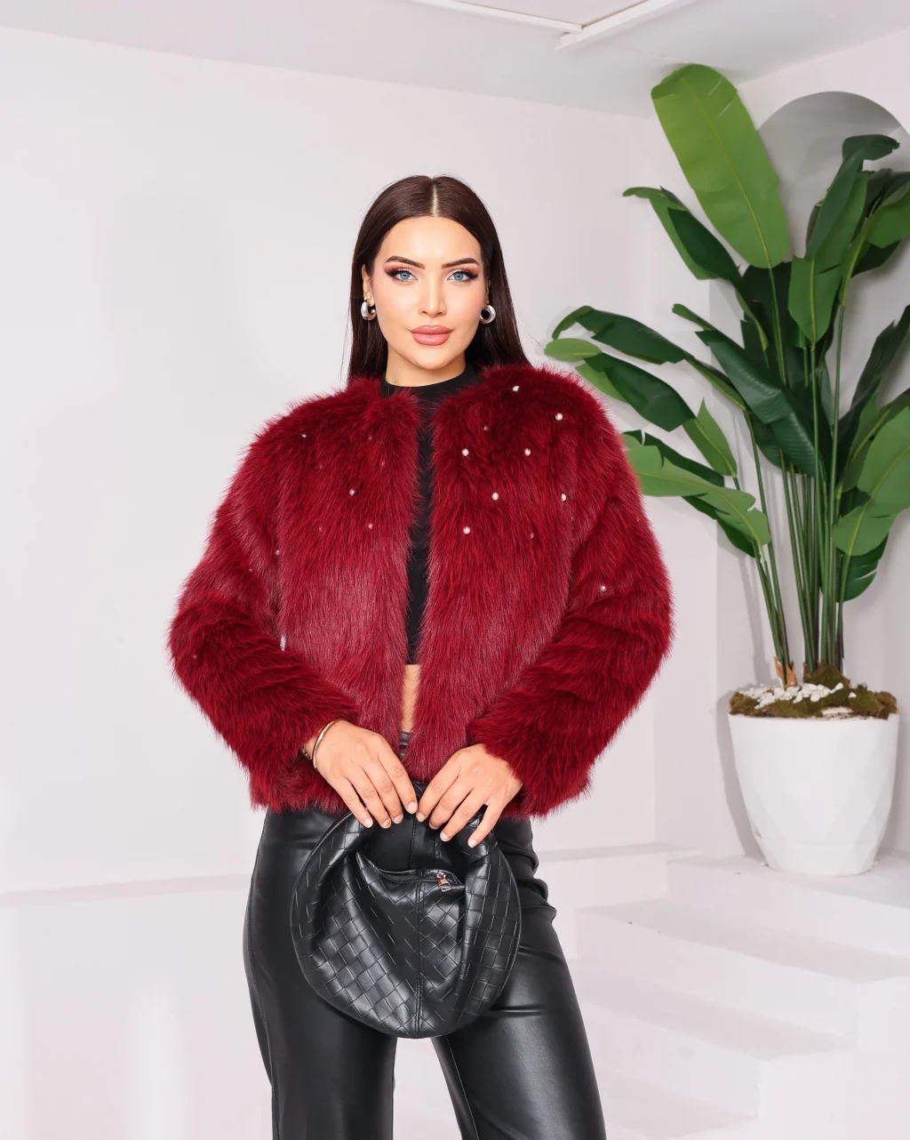 Taş Detaylı Lolita Kürk Bordo